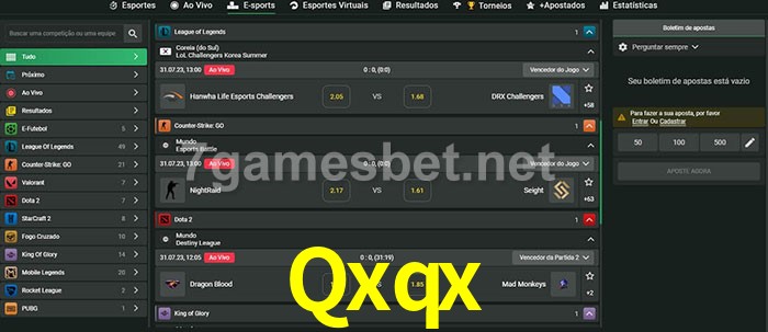 O Qxqx oferece uma grande seleção de opções de apostas em e-sports com probabilidades competitivas